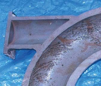 碳鋼工藝管道的內(nèi)表面上會(huì)自發(fā)形成一個(gè)保護(hù)性氧化層(四氧化三鐵銹層或赤鐵層)。在管道內(nèi)水流的高速?zèng)_刷下,這個(gè)氧化層可能會(huì)被沖掉。雖然管道材料會(huì)試圖重新生成一層氧化物,但是由于水流的高速?zèng)_刷,這層氧化物也會(huì)被沖掉。這種腐蝕現(xiàn)象被稱為流動(dòng)加速腐蝕(FAC)。來自彎頭、三通和異徑管接頭等管件的紊流往往會(huì)使流動(dòng)加速腐蝕變得更為嚴(yán)重。